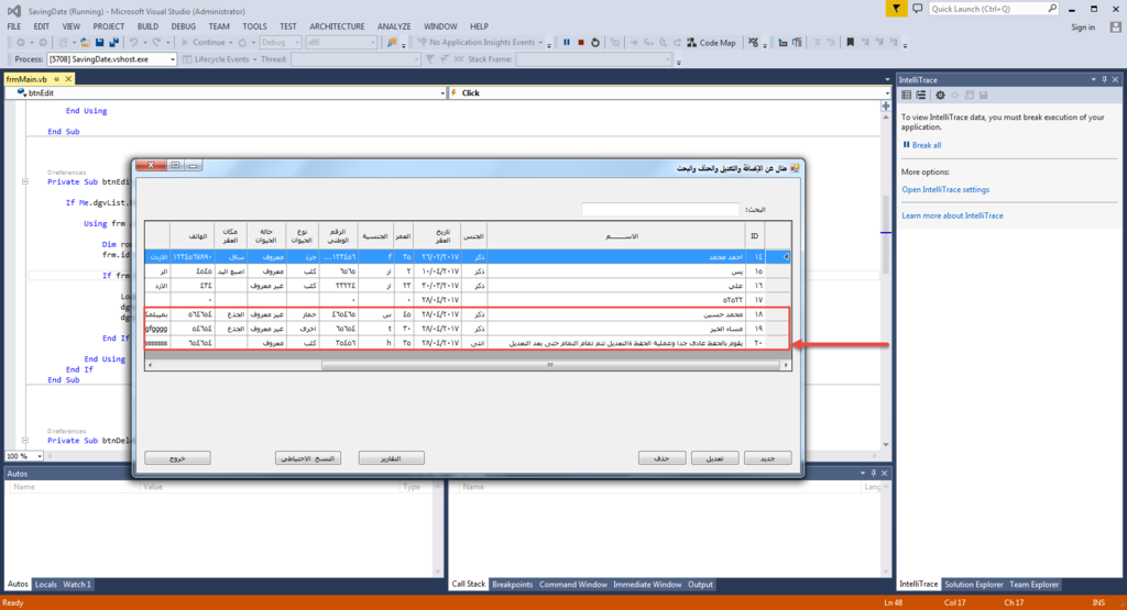 1- بكرر الاسماء عند التعديل حتى لو ما عملت موافق بمجرد انه تفتح الفورم بخزن الاسم بالداتا جريد