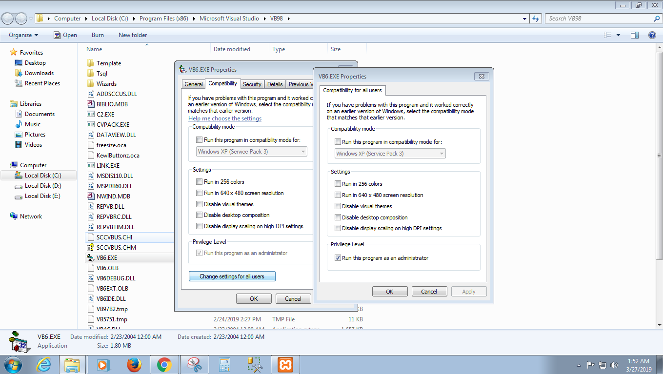 ينبغي تشغيل برنامج الفيجوال بيسك كمسؤول