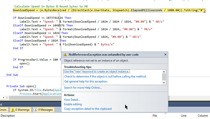 في مشكلة بتجيلي في هذا الكود الخاص ب عمل حسابة لسرعة التحميل المشكلة اهي ومش عرف ما سبب المشكلة