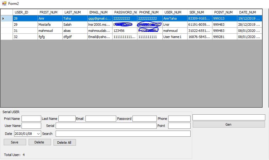 عندي بالفورم داتا جريد فيو تستقبل بيانات من قاعده بيانات سيكوال كما هو موضح بالصوره اريد عند اضافه كلمه user name1 في تكست بوكس 1 واضغط علي الزر