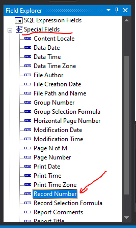 اذهب الى Field Explorer من خيار Special Fields أختر Record Number