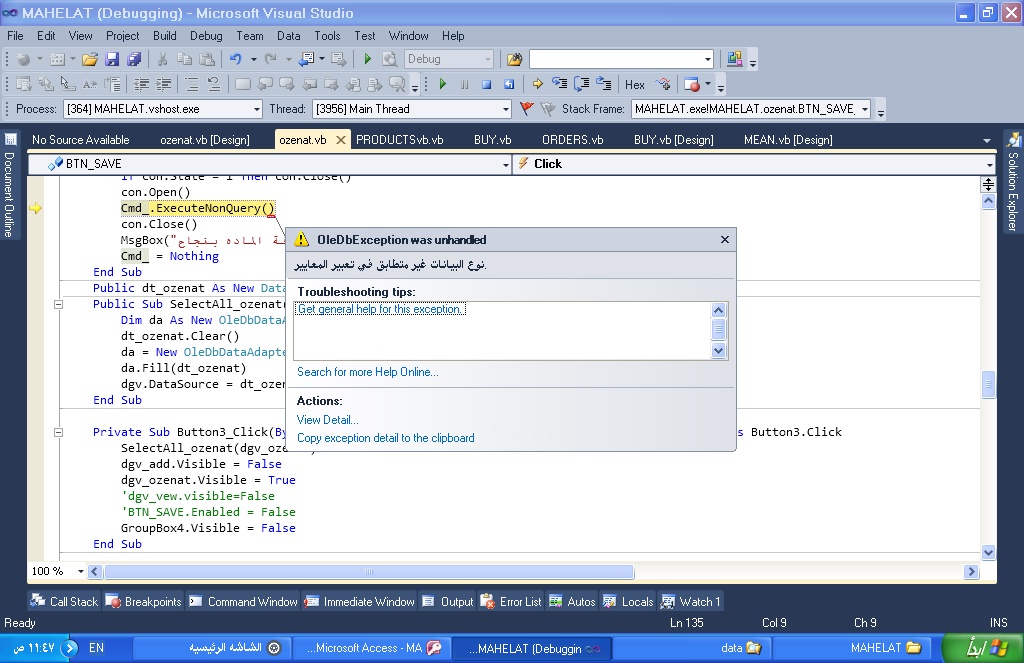 اخي ضع نسخة من البرنامج وقاعدة البيانات ليتسنى لجميع الاخوة في تفحص الكود والمساعدة افضل