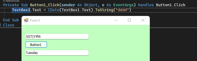 TextBox1.Text = DateTimePicker1.Value.DayOfWeek