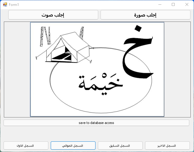 اريد تخزين صورة و صوت في الداتاباز اكسس ثم عرضها في المثال المرفق