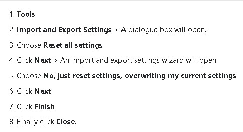 اختاري التبويب Commands اختاري الزر الاخير في مجموعة الازرار على اليمين والمسمى Reset All . انتهى