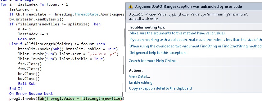 هل فيجوال بيسك يمكنها تقسم ملف؟