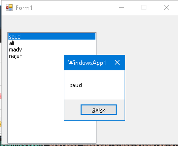يفترض ان تظهر القيمة في خاصية Text لــ ListBox