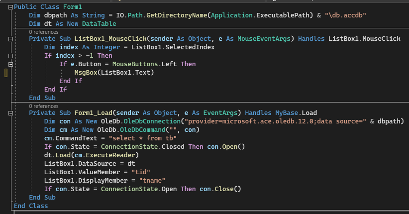 السلام عليكم هناك ليست بوكس مربوطه بقاعده بيانات وعايز كود لجلب لجلب اسماء العناصر المحدده؟ جربت هذا الكود ومنغعش Listbox1.getitemtext(Listbox1.selecteditem)