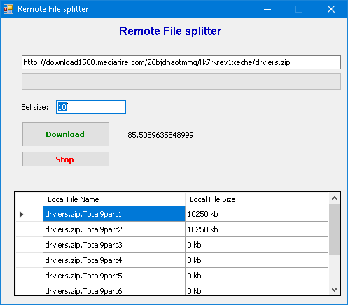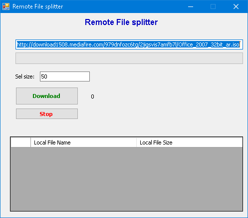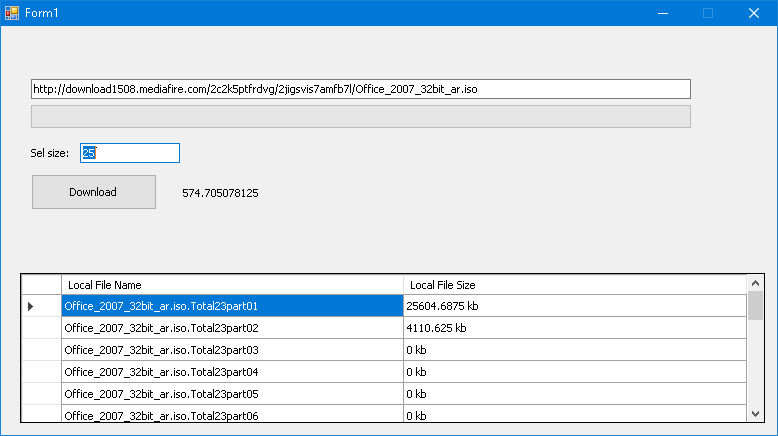 اذن يمكنك ان تقوم بتقسيم التحميل بناء على حجم الملف حيث الجزء الاول يمرر للوضيفة Seek موقع بداية التحميل وهو 0 بايت