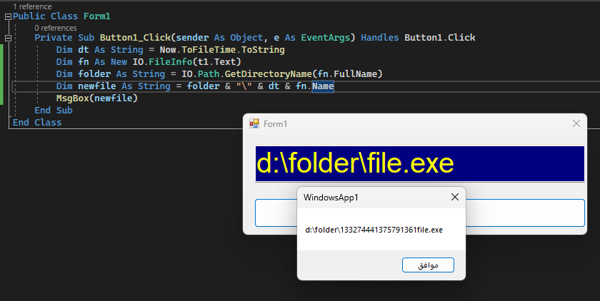 Dim newfile As String = folder & "\" & dt & fn.Name