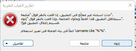 بعدها ظهر الخطأ وسببه علامة التنصيص في البحث بعد كلمة Like