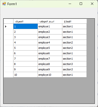 اقوم بتعبية الداتاجريد من الجدول tableemploye و يظهر لي الحقل sectionemploye كرقم
