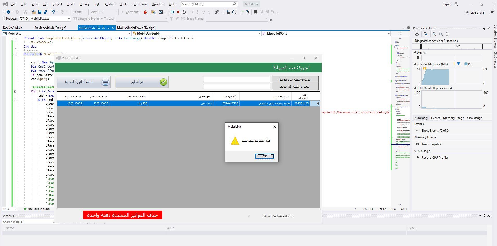 MsgBox(" عفواً ، هناك خطأ بعملية الحفظ", MessageBoxIcon.Exclamation)