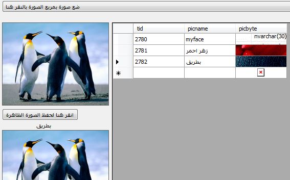 مثال حول حفظ كافة الصور بتنسيق محدد و الموجودة بمجلد محدد بضغطة زر بعد تحويلها الى بيناري - سعود - 09-03-13 shado1796 كتب :اخي راجع ردي الاخير في الاعلى لو سمحت ،، انا قصدت الاخ بردي الاخير. اما نوع عمود الصور فهو nvarbinnary انظر #14 مثال حول حفظ كافة الصور بتنسيق محدد و الموجودة بمجلد محدد بضغطة زر بعد تحويلها الى بيناري - سعود - 09-03-13 بالنسبة لاداة Listview فلم افلح فيها ظللت ابحث عن امكانية او حدث مشابه لحدث curent ولم اجد لذلك اعتذر .. لو حبيت استخدام Datagridview فسهلة ان شاء الله تعالى. مثال حول حفظ كافة الصور بتنسيق محدد و الموجودة بمجلد محدد بضغطة زر بعد تحويلها الى بيناري - سعود - 09-03-13 نوع العمود هو كود : varbinary(max)مثال حول حفظ كافة الصور بتنسيق محدد و الموجودة بمجلد محدد بضغطة زر بعد تحويلها الى بيناري - مبرمج بلا حدود - 09-03-13 نعم اخي انه بالفيجوال بيسك 6 حفظك الله ونصحنياخ بمراسلة الاخ سعود وقد جاتك الى هنا بارك الله فيك مثال حول حفظ كافة الصور بتنسيق محدد و الموجودة بمجلد محدد بضغطة زر بعد تحويلها الى بيناري - shado1796 - 09-03-13 سعود كتب : كيف افعل ذلك ،، ؟؟؟ مثال حول حفظ كافة الصور بتنسيق محدد و الموجودة بمجلد محدد بضغطة زر بعد تحويلها الى بيناري - سعود - 09-03-13 shado1796 كتب :كيف افعل ذلك ،، ؟؟؟عن طريق برنامج SQL Server Management Studio Express مثال حول حفظ كافة الصور بتنسيق محدد و الموجودة بمجلد محدد بضغطة زر بعد تحويلها الى بيناري - سعود - 09-03-13 http://vb4arb.com/vb/uploaded/34_11362841289.zip هذا المثال بعد التعديل مثال حول حفظ كافة الصور بتنسيق محدد و الموجودة بمجلد محدد بضغطة زر بعد تحويلها الى بيناري - مبرمج أوتار - 09-03-13 بارك الله فيك |