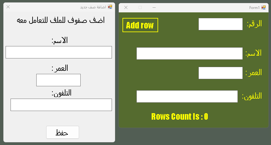 RE: عرض الداتاتبل في التكسبوكس - kebboud - 21-06-23 ههههههههه شكرا أخي سعود ... أنا أركز عليك شخصيا لأننا نحن الموريتانيون نتعلق نفسيا و روحيا باخوتنا السعوديين سأزيدك شرحا حتى تفهم مشكلتي لعل و عسى أن يكون حلها على يدك عندي مربع نص TEXTBOX و أعمل عليه عملية بحث عن طريق الخاصية TextChanged يعني عندما أكتب الرقم 5 تعرض بيانات الطالب رقم 5 على مجموعة من التكسبوكس شكرا أخي RE: عرض الداتاتبل في التكسبوكس - سعود - 21-06-23 (21-06-23, 02:24 AM)kebboud كتب : ههههههههه حياك الله اخي ... نفس الشعور لكل اخوتنا في العالم. هل سيتضح لك الامر حين اجهز مثال بالاكسس وانت تركز فقط على كيفية التعامل مع الـ DataTable ؟ البيانات ان كانت موجودة كلها في الـ DataTable نستخدم الاستعلام عبر DataTable.select اذا كنت تريد ارجاع صف كامل فتعرف DataRow تعبئها من النتيجة. للاسف لا اعرف الشرح و انما تجهيز مثال ان اردت ذلك. RE: عرض الداتاتبل في التكسبوكس - kebboud - 21-06-23 و أنا لا أريد إلا مثالا ... المثال هو أحسن طريقة للشرح تفضل أخي الكريم بمثالك RE: عرض الداتاتبل في التكسبوكس - سعود - 21-06-23 المثال مرفق بالتاكيد ستواجه مشكلة تخص عدم تثبيت المزود provider لان لدي هو 64 بت ولديك يمكن يكون 32 بت . عدلها من خصائص مشروعك وسيعمل معك.