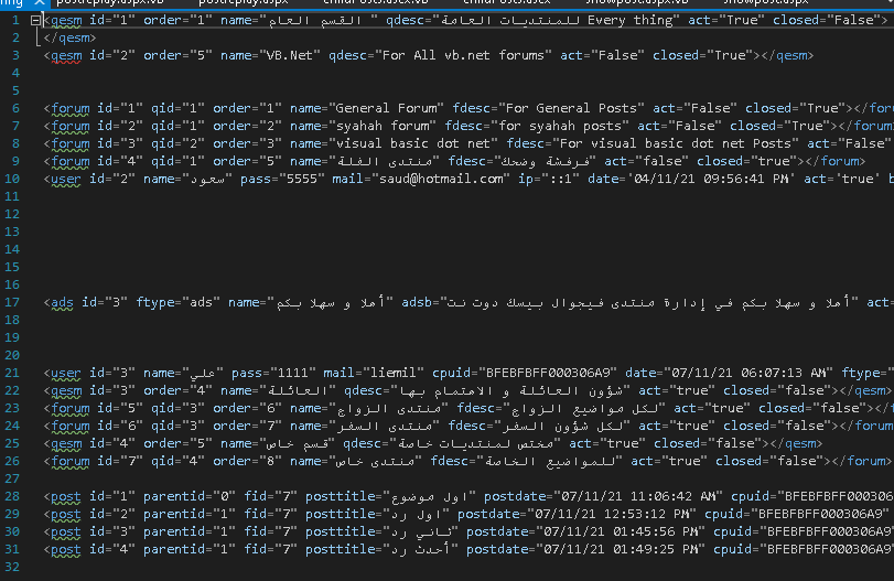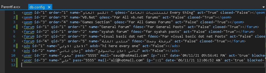 الان صورة ملف db.config ويحتوي كل البيانات الى الان(اقصد اني لم احدث هذه الجزئية)