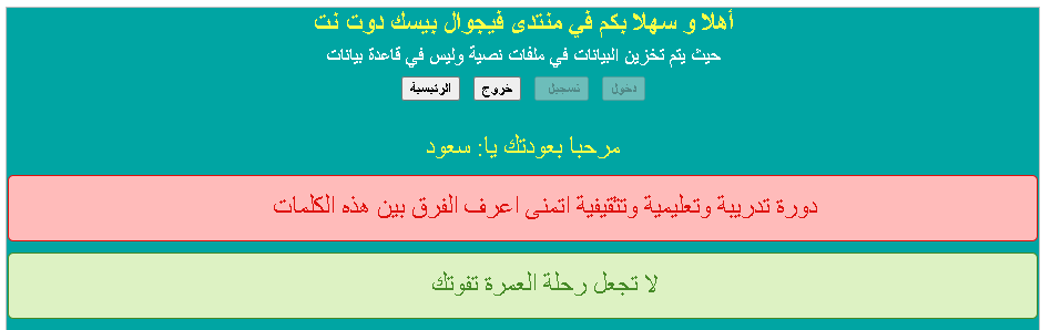 ولكن ربما هي في الواقع هروب من التعامل مع قواعد البيانات او على الاقل تأجيلها ... اقول ربما ، واما عن نفسي فقد تهربت فعلا من التعامل مع قواعد البيانات حين بدأت بالبي اج بي بحدود عام 2002 ، ولجأت وقتها الى استخدام الملفات النصية في انشاء وبرمجة أول مدونة لي بالبي اج بي ، وبعد ذلك ندمت لاني انما اخرت تعلم قواعد البيانات فسبقني الاخرون وتأخرت انا ...