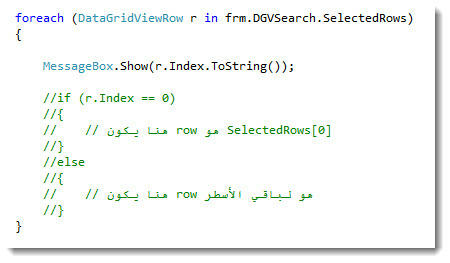 هذا صحيح لأني أريد أن يكون المتغير row مصفوفة من نوع DataGridViewRow ،