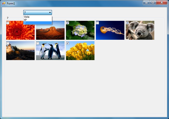 nin9e كتب :طيب انا اسف بس ممكن مثال علي المشروع. وكان في طلب اخر ممكن combobox يكون فيه مثلا (Vistas-XP- 7) يعني لو اخترت VISTAS يجبلي صور VISTAS في ال Group box. و انا اسف تعبتك معايا و مشكوررررررررررررررررررر... D:
