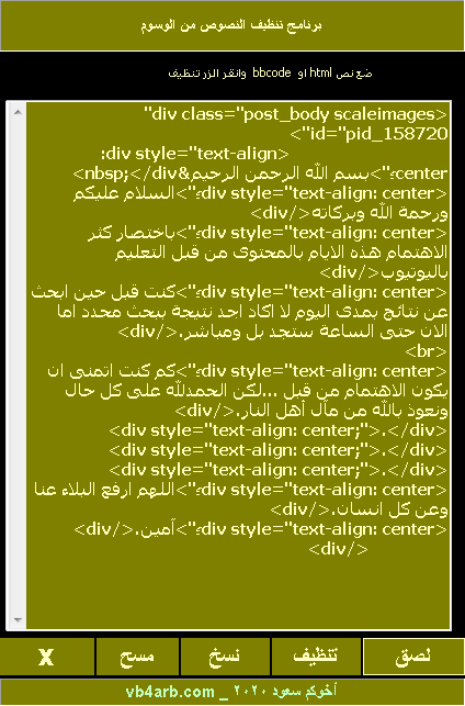 [مشروع] *[لا جديد- بل تجديد]*تنظيف نص معين من وسوم html and bbcode