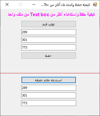 كيفية حفظ واستدعاء أكثر من Text box من ملف واحد