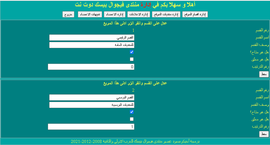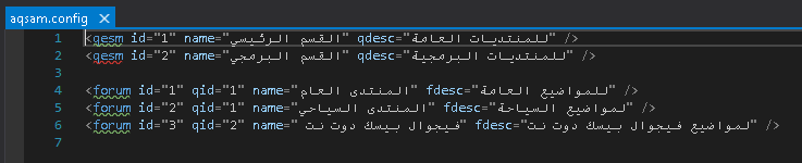والتالي كود عنصر التحكم الخاص بالاقسام وكيف هو ايضا يحتضن المنتديات