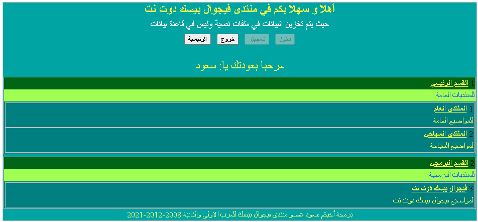 صفحة الـ default.aspx الرئيسية تقوم بجلب الاقسام الرئيسية وكل قسم عبارة عن كونتول مخصص ايضا يحتضن الفروع من المنتديات