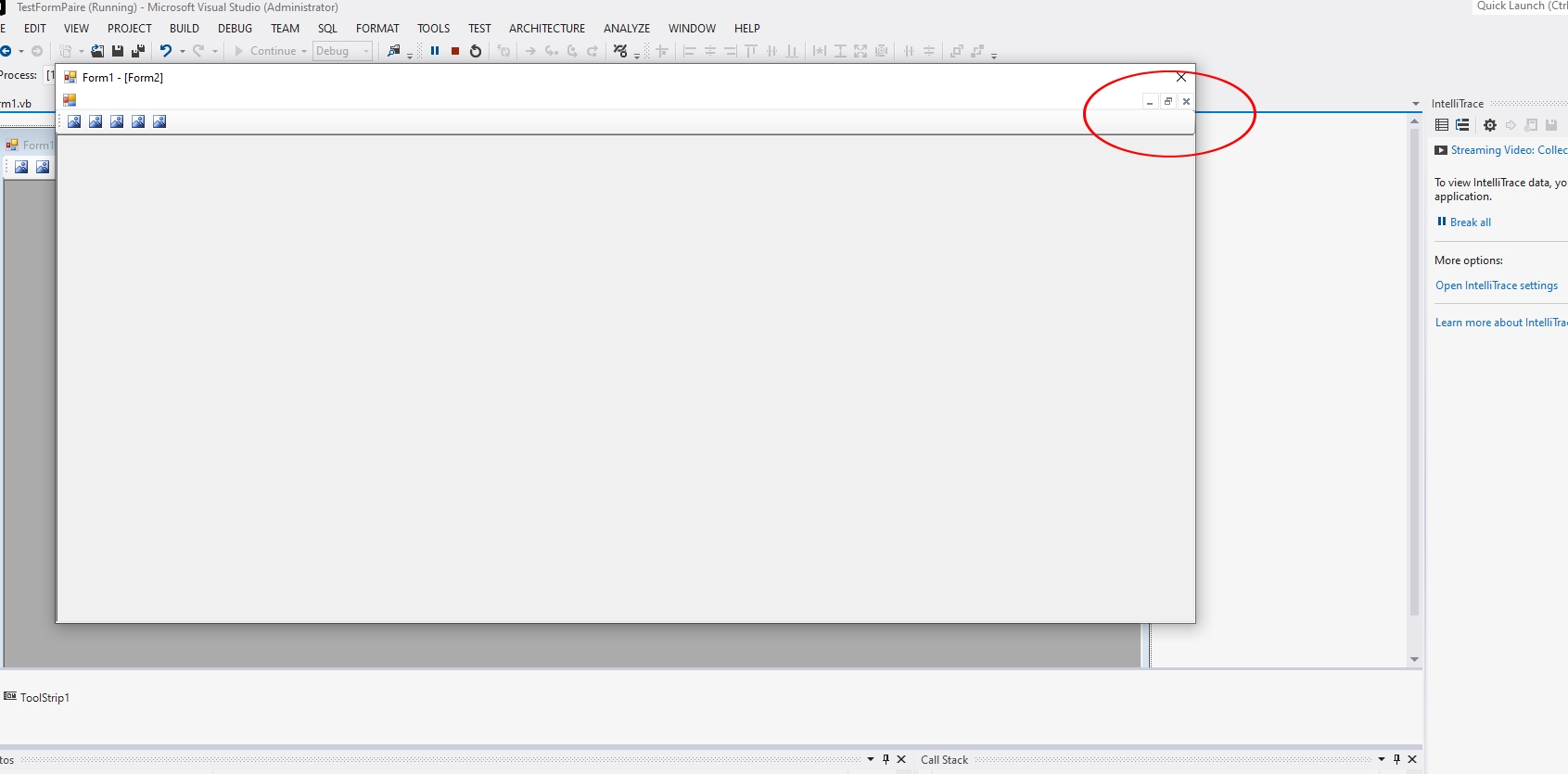 لدي فورم رئيسي فعلت له خاصية ismdicontainer و اضفة له اداة toolstip و اضفة فيها ازرار و عند الضغط على زر يفتح فورم فرعي قمت باضافته