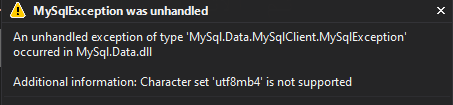[سؤال] مشكلة utf8 و utf8mp4 فى اتصال الـ .net و Mysql