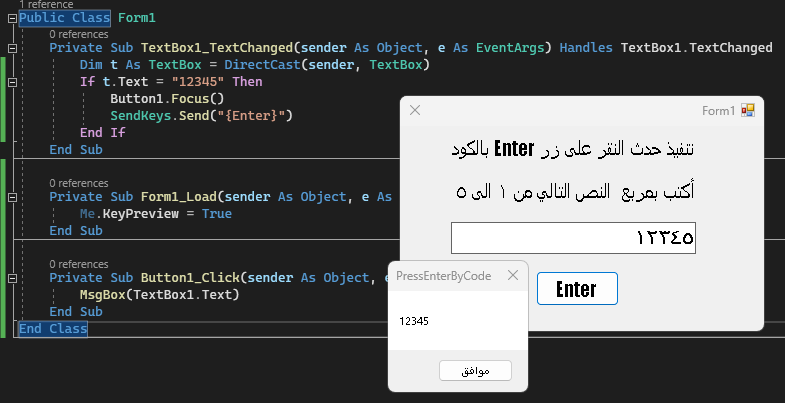 اريد كود يعمل امر انتر دخال تكست