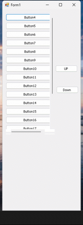 عندي FlowlayoutPanil محتاج اعمل له Scroll عند طريق إثنين Buttons واحد يعمل scroll للأعلي والثاني للأسفل عند الضغط عليهما