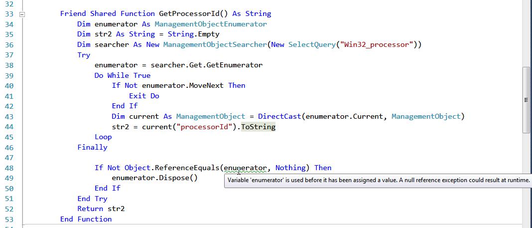 Dim enumerator As ManagementObjectEnumerator Nothing ' تعيين قيمة ابتدائية