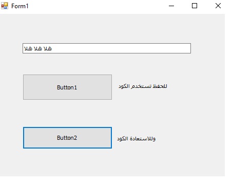 اما زر استعاده ما الفائده منه انا ابغى اكتب واحفظ المكتوب فقط ويعمل حتى بعد النقل لكمبيوتر اخر اجد موجود المكتوب داخل TextBox عند تشغيل التطبيق
