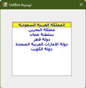 e.Graphics.FillRectangle(Brushes.Yellow, e.Bounds) ' لون التحديد أصفر